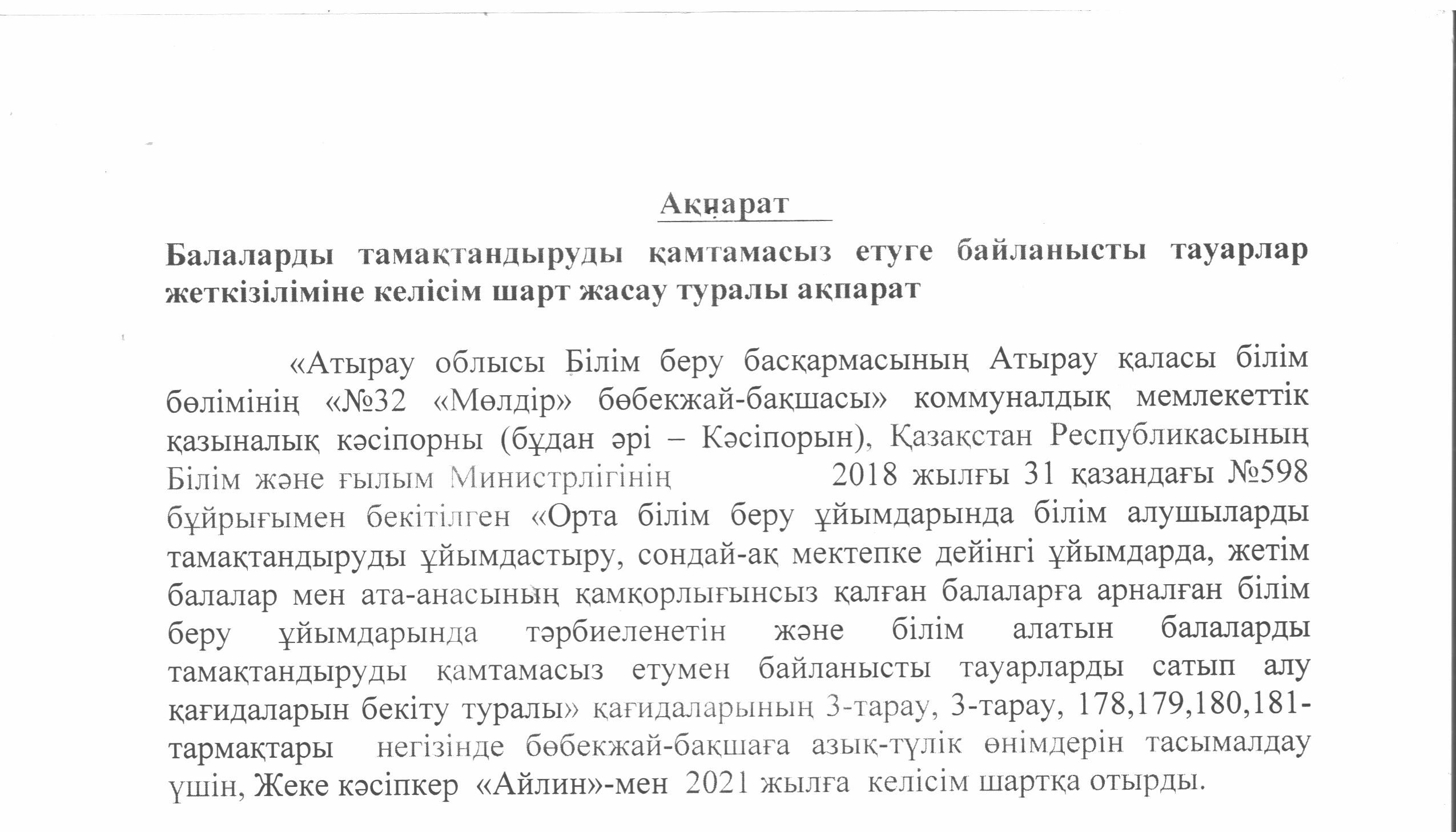 КМҚК №32 "МӨЛДІР" БӨБЕКЖАЙ БАЛАБАҚШАСЫ