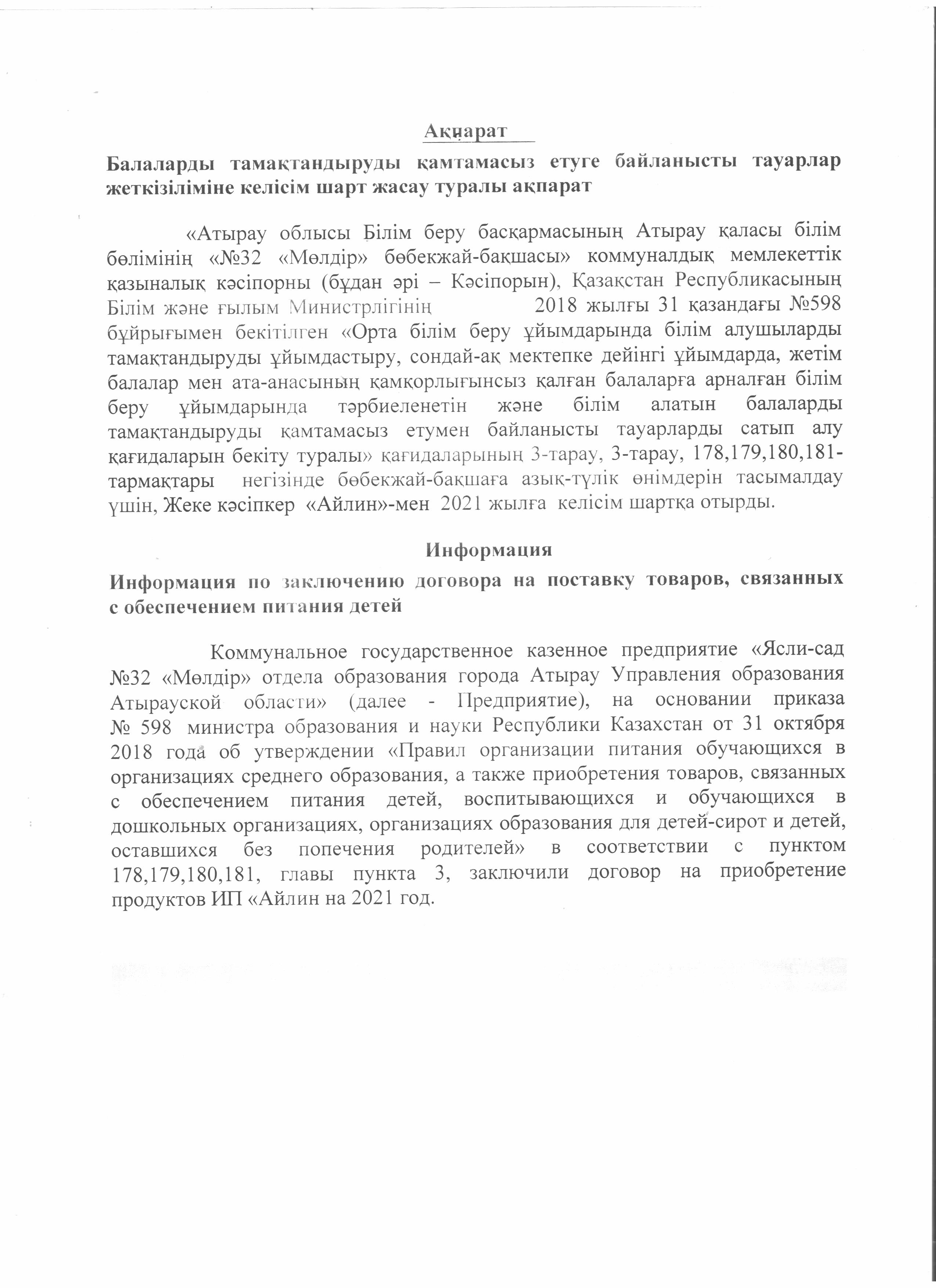 КМҚК №32 "МӨЛДІР" БӨБЕКЖАЙ БАЛАБАҚШАСЫ
