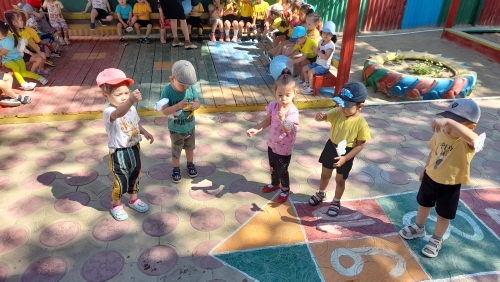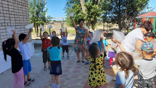 "Атырау облысы Білім беру басқармасының", Атырау қаласы білім бөлімінің N32 "Мөлдір" бөбекжай-бақшасы коммуналдық мемлекеттік қазыналық кәсіпорны жазғы сауықтыру іс-шараларының жоспарына сай «Ақ гүлдер» мектепалды даярлық тобының тәрбиешісі Утеулиева Жанар Жұмақызы ауа күніне орай балалармен «Ауа қайда жасырынған?» эксперимент іс-шарасын өткізді