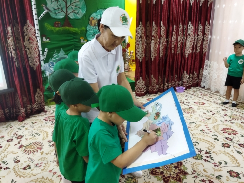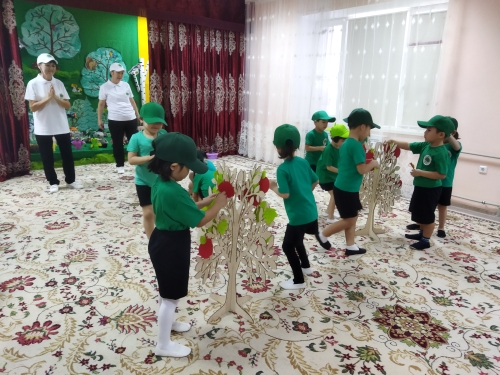 Атырау облысы Білім беру басқармасының", Атырау қаласы білім бөлімінің коммуналдық мемлекеттік қазыналық кәсіпорны N32 "Мөлдір" бөбекжай - бақшасында «Туған жер»тақырыбындағы қалалық экологиялық квест марафоны бойынша ұйымдастырылған «Ботақан» ересек, «Ақгүлдер» мектепалды даярлық тобының тәрбиеленушілерінің қатысуымен «Экология әлеміне саяхат» тақырыбындағы байқаудан көрініс.
