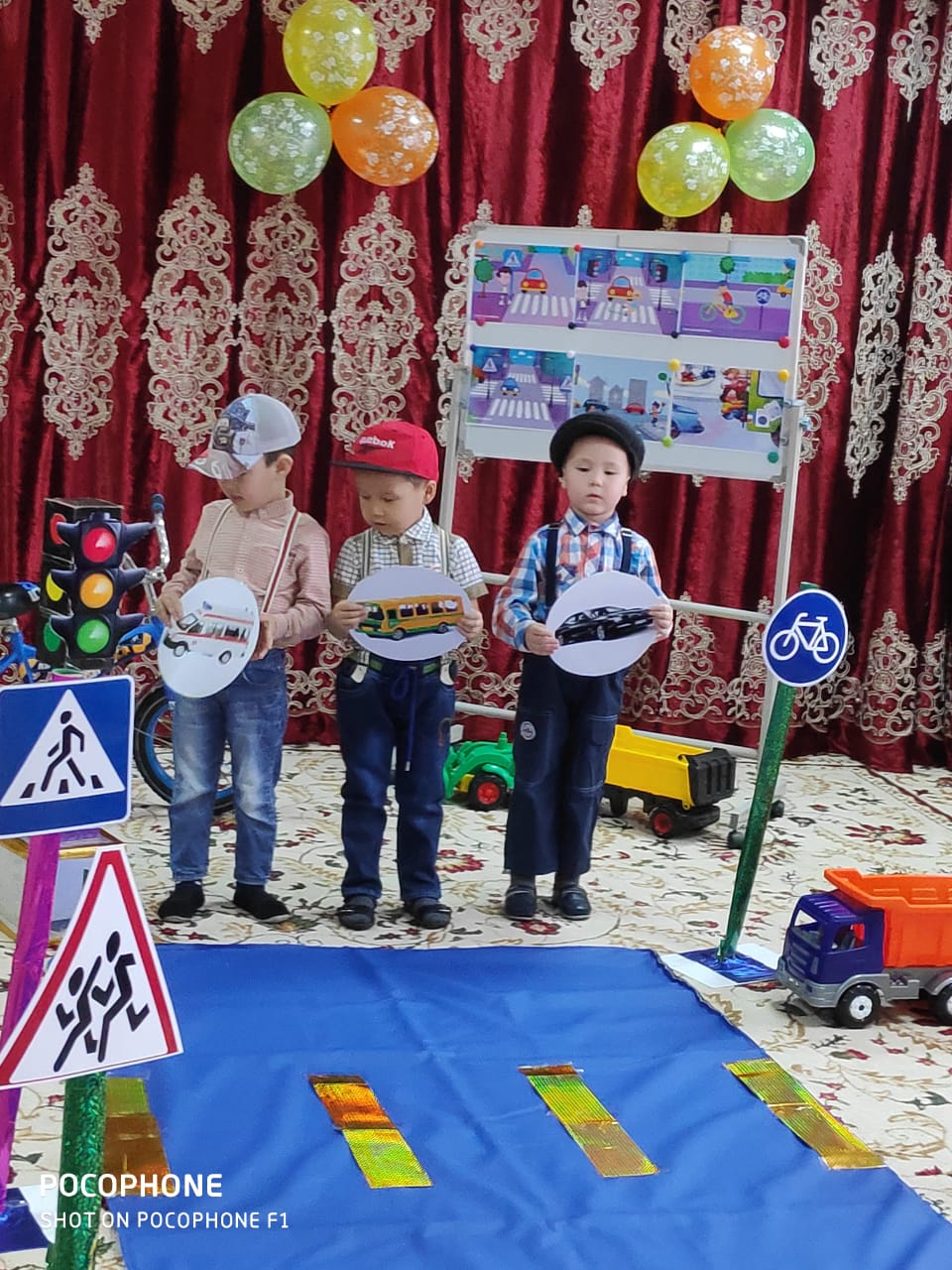 Балалар:Бағдаршам (осы кезде машиналардың сигнал дауыстары естіледі)