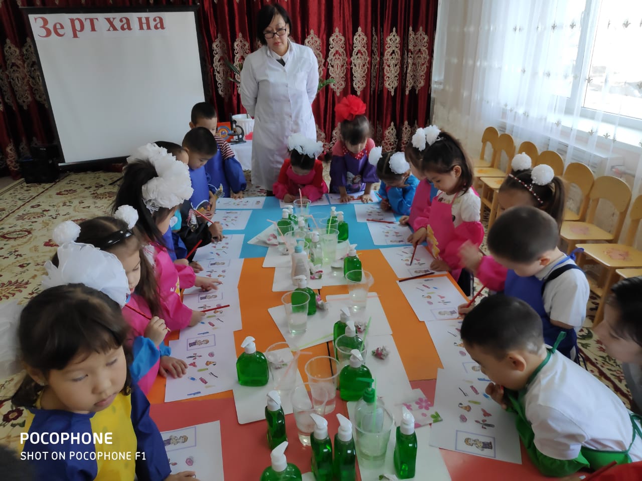 Тәрбиеші :Зертханаға барар алдындағы балаларды