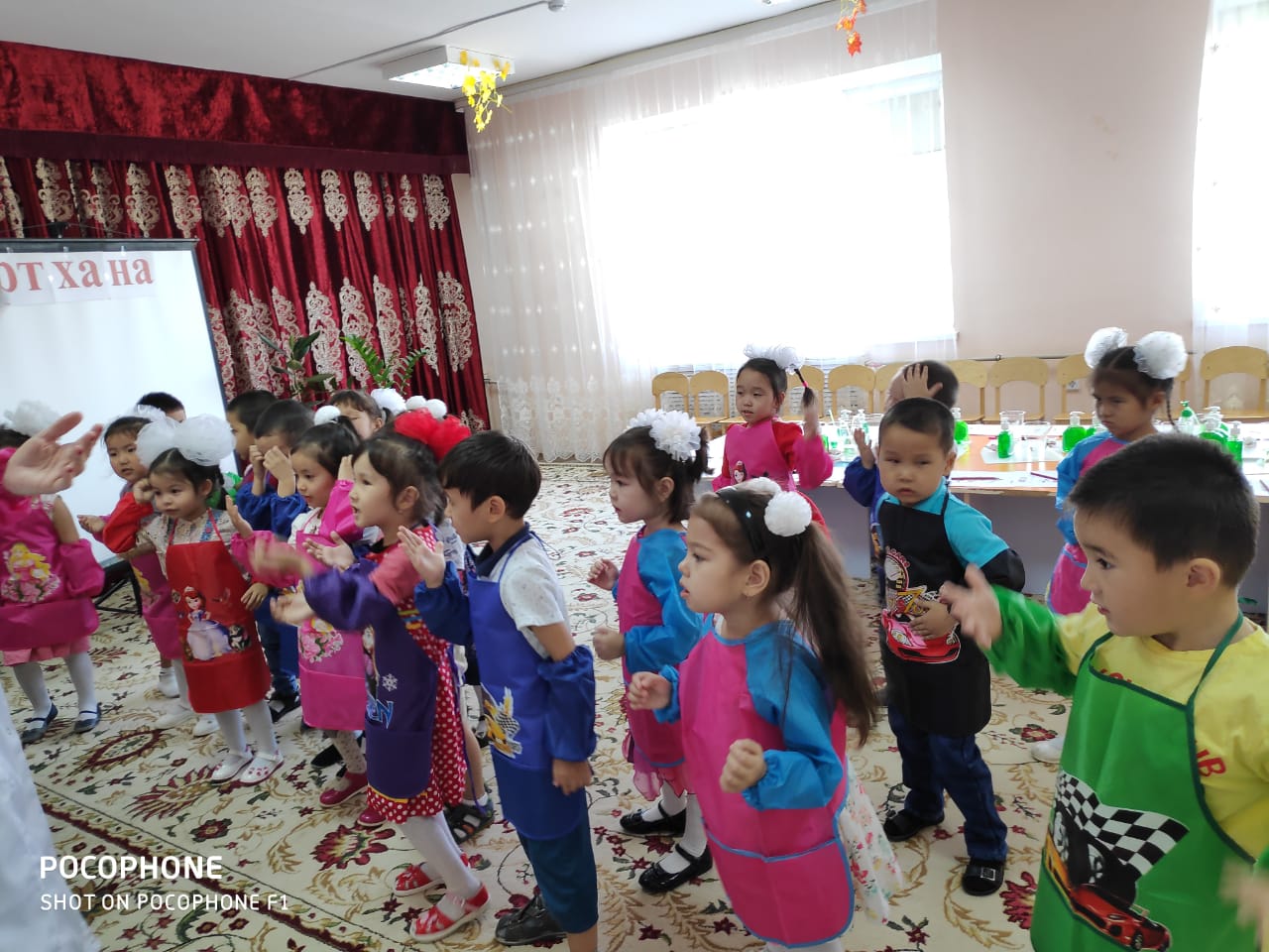(Балаларға тәжірибе сабағың өткізу үшін,арнайы киімдер кигізу)