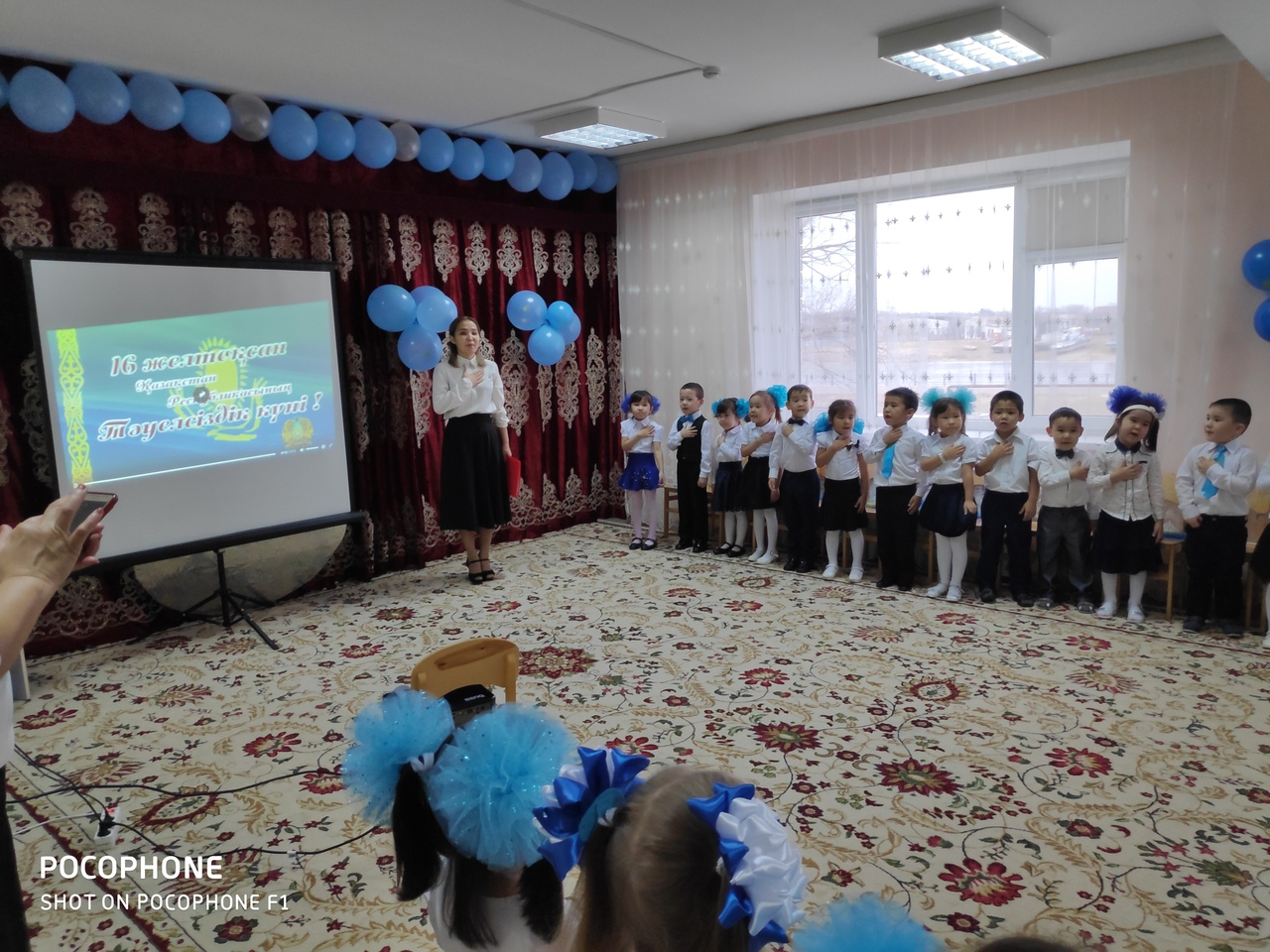 Тәуелсіздігіміз баянды болсын дей отырып, кішкентай бүлдіршіндеріміз ертеңгілікті ән ұранмен ашады.