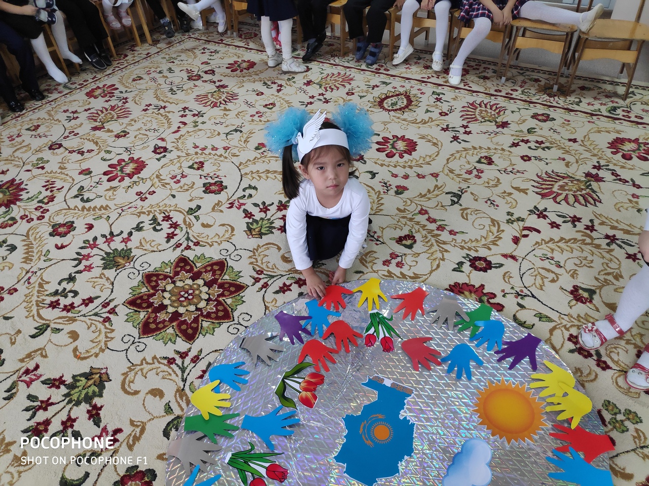 Жүргізуші: -Міне, балалар, бүгінгі таңда Қазақстан тәуелсіз мемлекет. Біздің өзіміздің туымыз, елтаңбамыз, әнұранымыз бар. Егеменді Қазақстан мемлекетіміз.