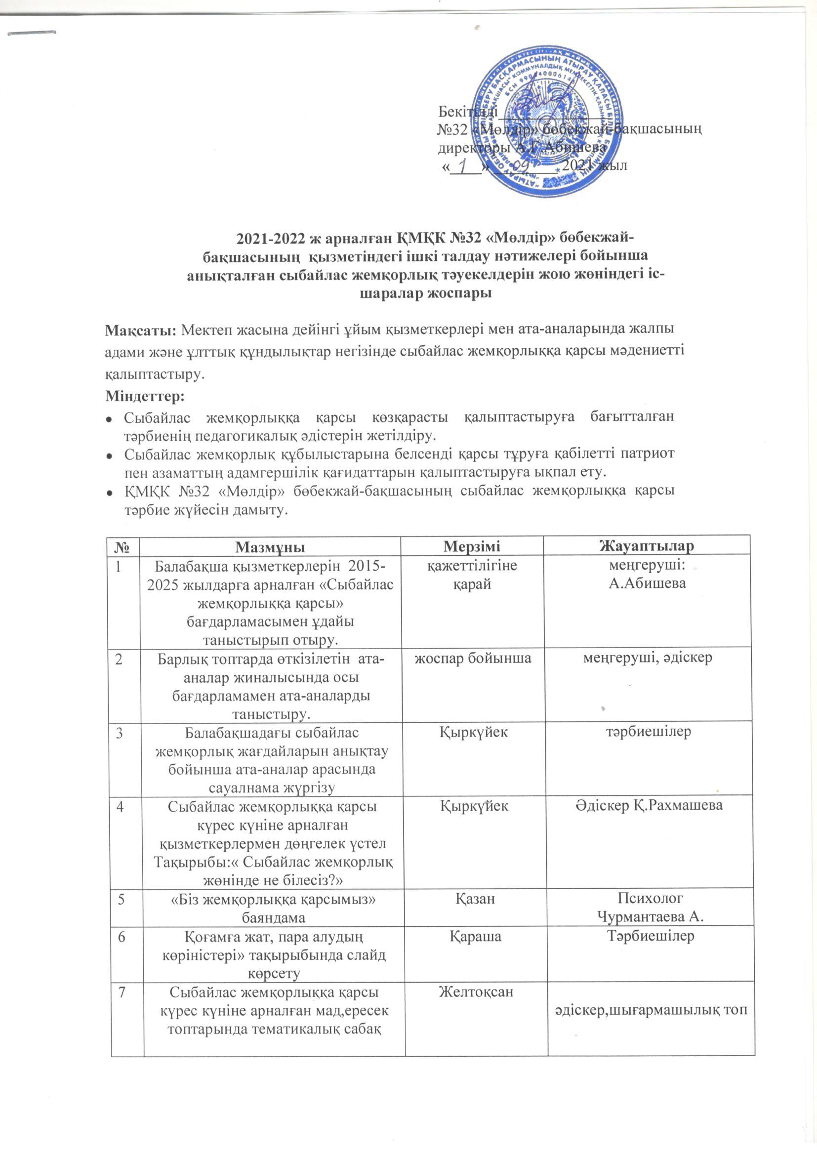 | 1 | 32 Мөлдір бб .Сыбайлас жемқорлыққа ішкі талдау | |