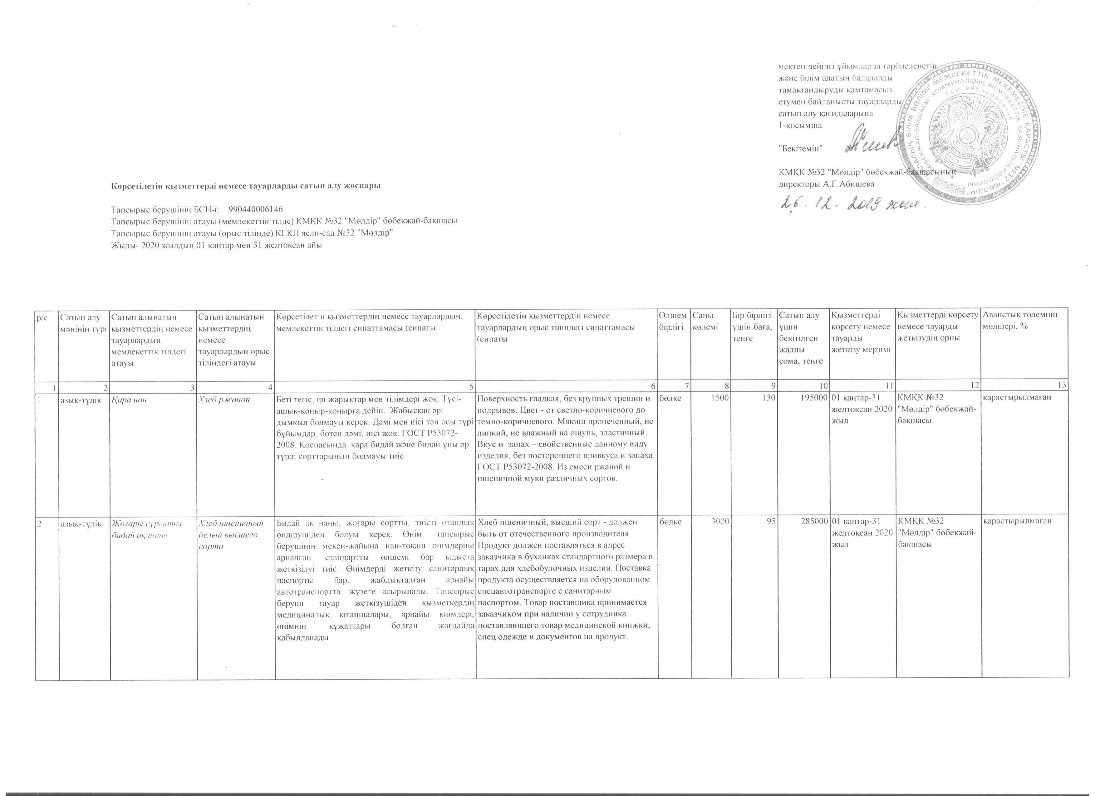 Көрсетілетін қызметтерді немесе тауарларды сатып алу жоспары
