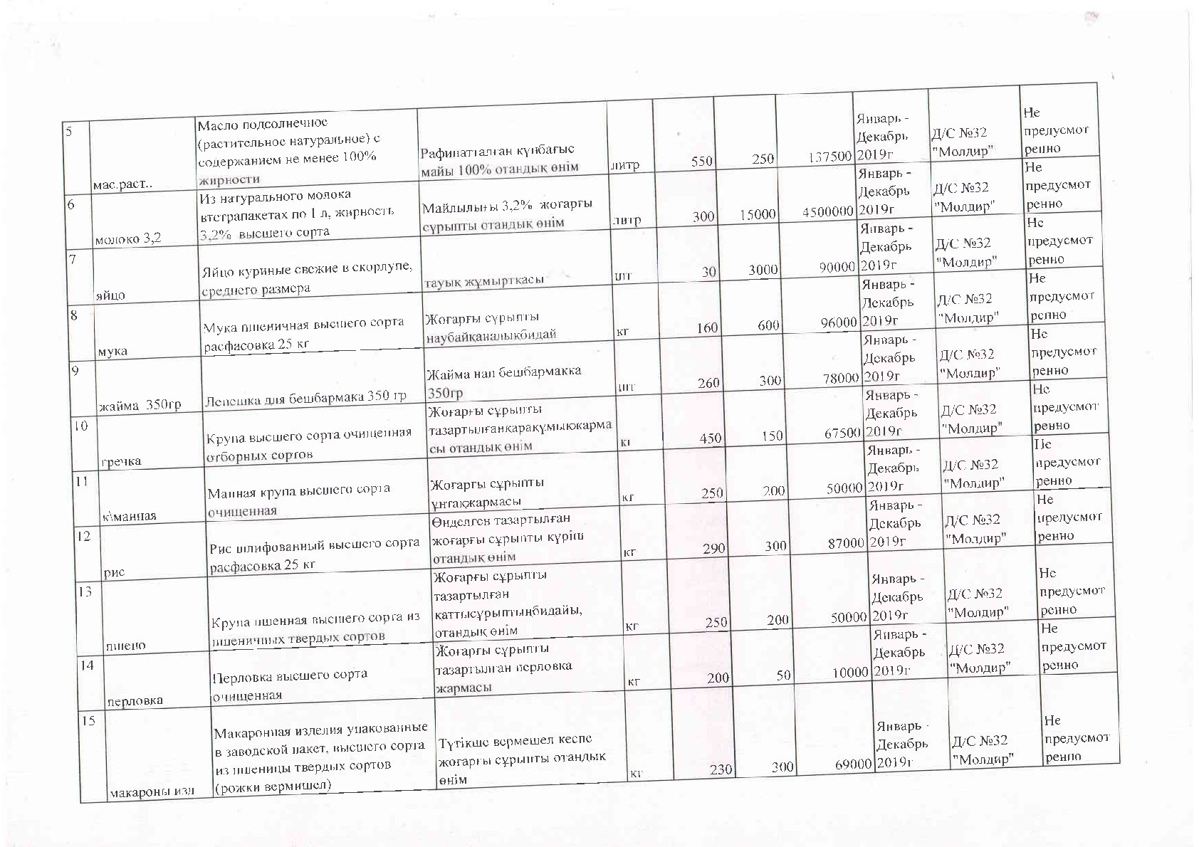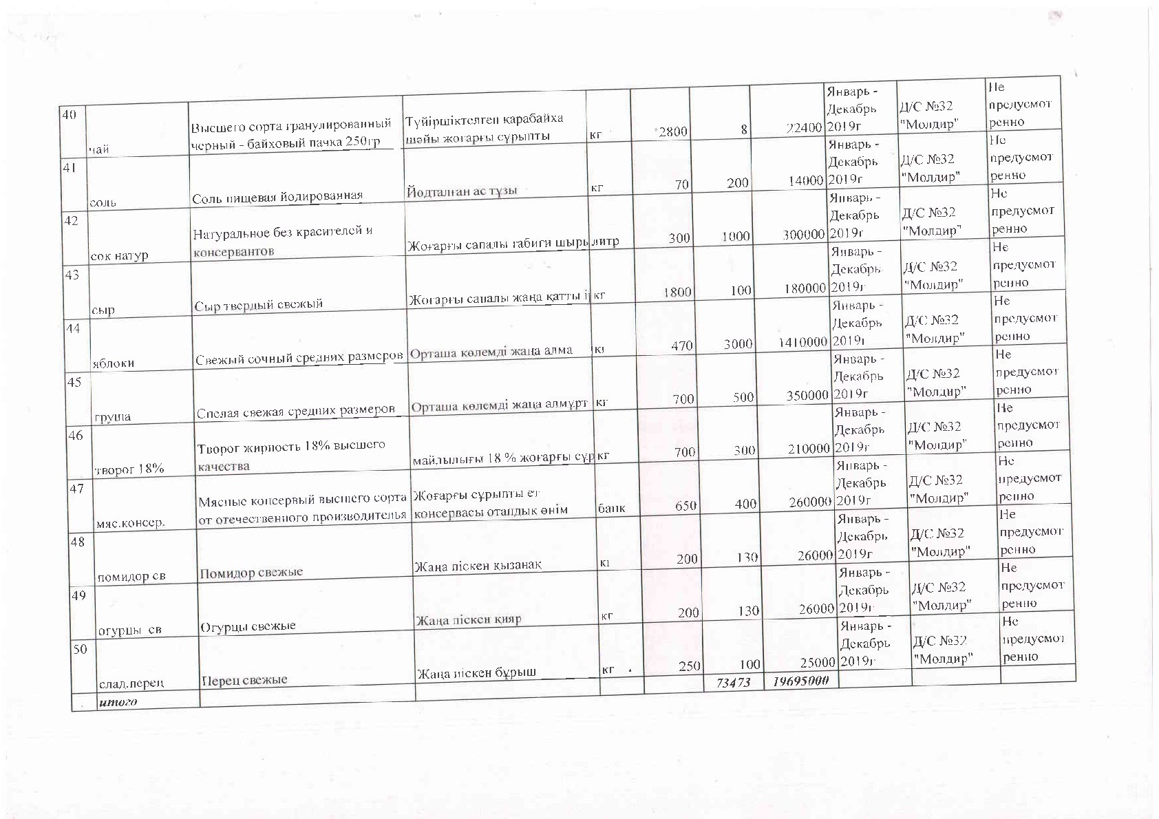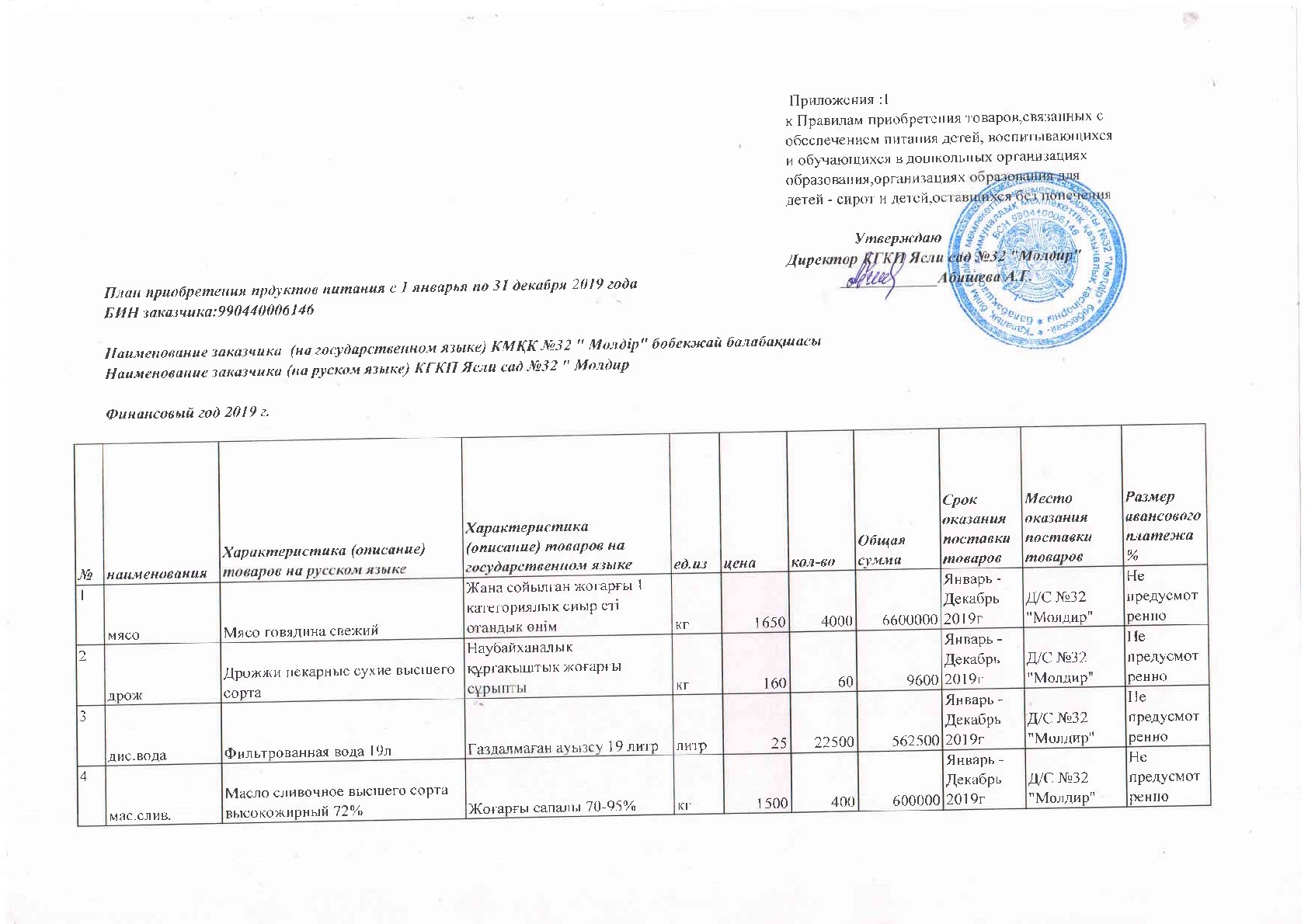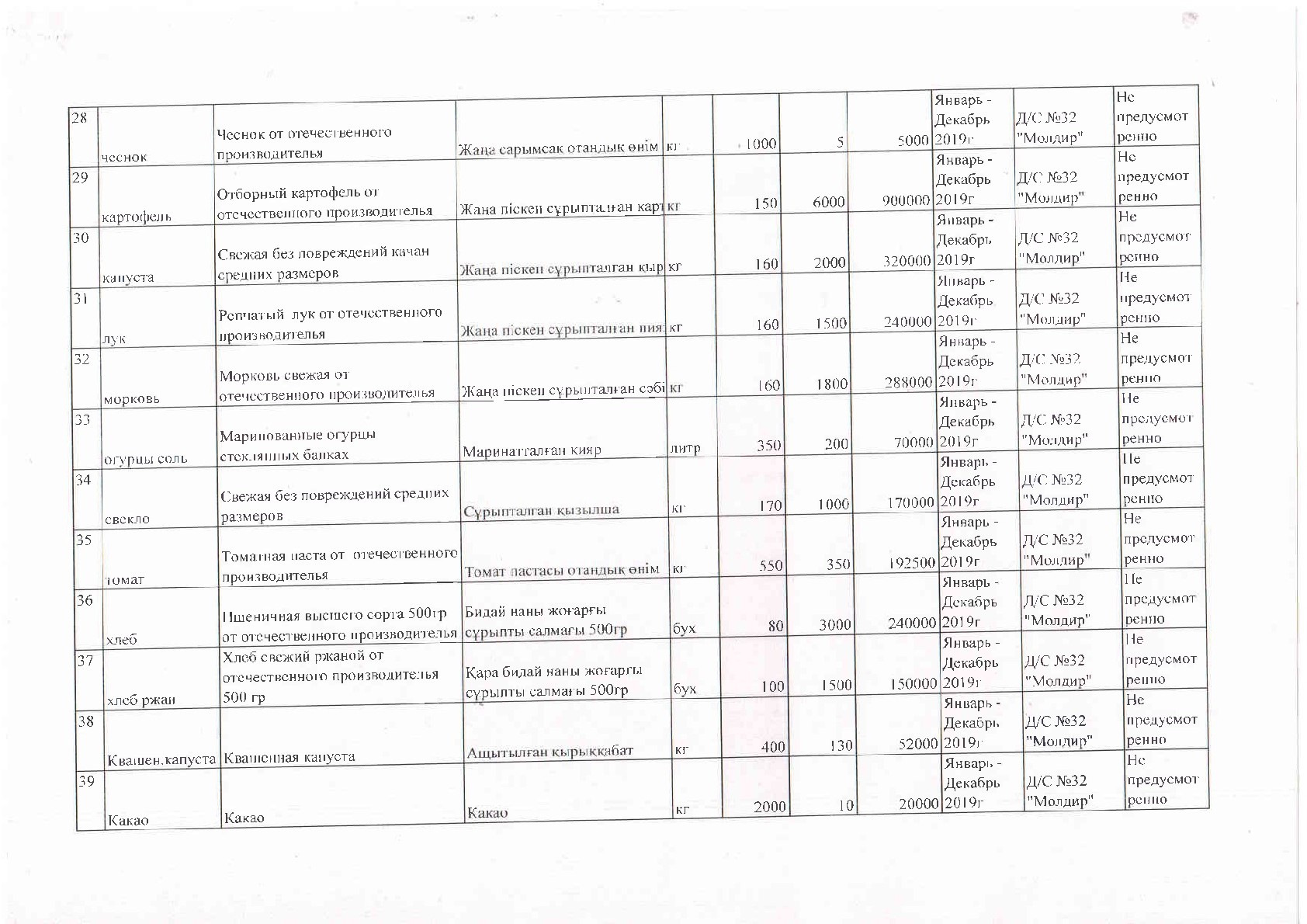 Государственное коммунальное казенное предприятие Ясли сад №32 «Молдир» заключили договор №39 от 28.12 .2018 г. с Ип «Утебалиева» на основании п.58 Правил приобретения товаров, связанных с обеспечением питания детей, воспитывающихся и обучающихся в дошкольных организациях образования для детей-сирот и детей, оставшихся без попечения родителей, утвержденных Приказом Министерства образования и науки Республики Казахстан от 31.12.2015года №717.